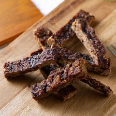国産の鮭を新鮮なうちにうすくスライスし、じっくり乾燥させたお魚のジャーキーです。