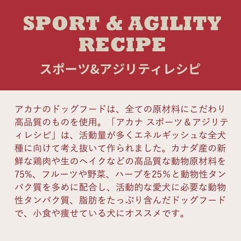 アカナ スポーツ&アジリティレシピ 11.4kg 正規品 ドッグフード 関東当日便