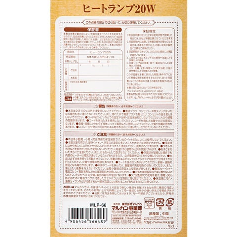 | ご注意 | ※本品は小動物用のヒーターです。目的以外の用途では使用しないでください。 |