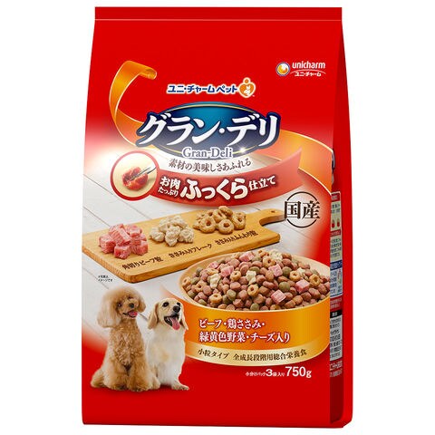 de20_unigr _dog グラン・デリ ふっくら仕立て ビーフ・鶏ささみ・緑黄色野菜・チーズ・角切りビーフ粒入り 750g 4520699654224 20191015 GBNM ドッグフード セミモイスト セミモイストフード 半生 ソフト ソフトタイプ 全成長段階 オールステージ 小粒 小粒タイプ ビーフ 大豆 チーズ 緑黄色野菜 野菜 チキン 鶏肉 総合栄養食 国産 日本製 全犬種 全犬種用 小型犬 小型犬用 ユニチャーム ユニ・チャーム S-99 opa2_choku p15gran grandeli_second uni2006point y19m10