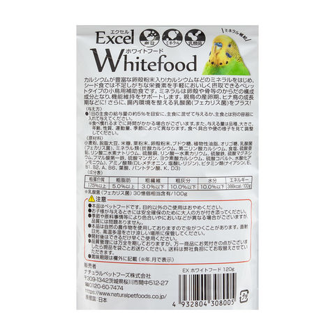 _animal NPF エクセル ホワイトフード 120g 鳥 フード 餌 えさ 4932804308005 20200715 GBNM 小動物 サプリメント 栄養補助 栄養剤 その他 カルシウム ミネラル ミネラル補給 卵殻 乳酸菌 国産 日本製 Whitefood Excel ナチュラルペットフーズ 親鳥 雛 ヒナ 産卵 産卵期 インコ セキセイインコ インコ類 フィンチ フィンチ類 ブンチョウ 文鳥 小鳥 opa2_choku y20m07