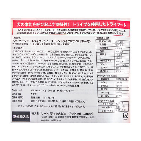 _dog グレインフリー ペットカインド トライプドライ グリーントライプ&ワイルドサーモン 小粒 230g 正規品 穀物不使用 4571378100013 20200709 GBNM 犬フード ドッグフード ドライフード グルテンフリー 総合栄養食 トライプ 大豆不使用 カナダ産 全犬種 オールステージ キノア配合 グルテン不使用 サーモン ラム ラムトライプ アレルギー ドライ フード ペットフード 嗜好性抜群 ビタミン ミネラル 低アレルギー キノア PetKind PURE KINDNESS GRAIN FREE 0.23kg リードバディ y20m07