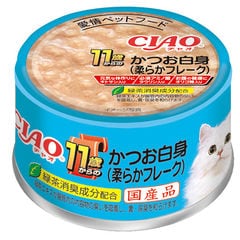 | ご注意 | ※本品は15歳頃からの猫用です。対象年齢以外の猫には与えないでください。 ※まれに小さな骨や鱗などが残っている場合があります。 |