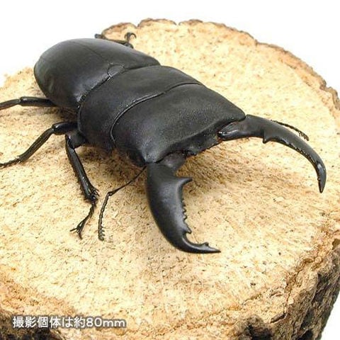 | どんな種類? | 東南アジア一帯に広く生息する大型ヒラタクワガタの代表ともいえる人気種です。100mmに到達する大きく太い体は迫力と重厚感に溢れています。大アゴは地域によって内歯の位置が上下し、内歯が下方に位置する“内歯下がり”の個体は横幅があることから特に人気です。流通量の多いベンクール産は内歯上がりのものが多いですが、内歯が中ほどから下方に見られる個体も見られます。アチェ、パダン、リアウ産は内歯下がりが多く、特に横幅のあるアチェは人気の産地になっています。流通量も多く飼育が容易、大きなサイズと大アゴのコレクション性の高さなど、初心者から飽きずに楽しめる種です。 ヒラタクワガタの仲間はオスの気が荒くメスが殺されてしまうことがあるため、交尾時以外はオスとメスを分けて飼育すると良いでしょう。冬場の低温には弱いので温度管理が必要です。 |
