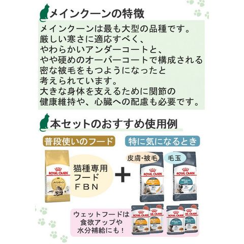 ロイヤルカナン 猫 メインクーンセット 毛玉、皮膚・被毛の健康に配慮 ドライ3種各1袋+ウェット2種各5袋 お一人様5点限り 関東当日便