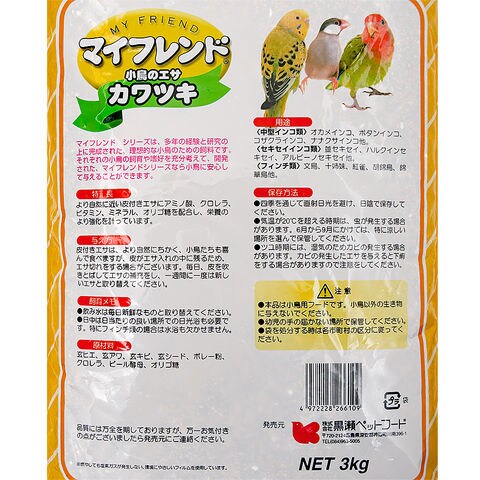 黒瀬ペットフード マイフレンド カワツキ 3kg 4972228266109 20210729 y21m07 mikari 鳥 フード 餌 エサ 飼料 アワ アミノ酸 クロレラ ビタミン ミネラル オリゴ糖 小鳥 ご飯 インコ オカメインコ ボタンインコ コザクラインコ ナナクサインコ セキセイインコ 文鳥 フィンチ 十姉妹 中型インコ ゴハン opa2_choku