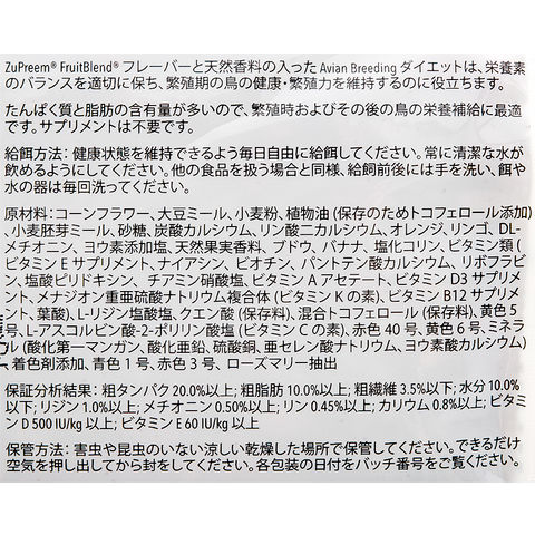 AvianBreedingFormula FruitBlendFlavor with natural flavors Parrots&Conures ズプリーム フルーツブレンド ML ヨウム ブリーダー用 907g 0762177786209 20210802 y21m08 mikari トリ 小動物 鳥 フード 餌 エサ オカメインコ ボタンインコ コニュア ペレット ビタミン ミネラル ヘルシー 栄養 健康 バランス バランスフード 主食 Zupreem フレーバー ゴハン ご飯 y21m07 Importbird ZuPreempellet
