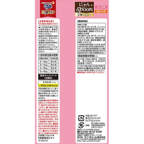 銀のスプーン 三ツ星グルメ おやつにゃんSpoon2種のアソート まぐろ&鶏ささみ味40g 4520699695920 20211201 y21m12 ytks メーカー画像 猫フード キャットフード マグロ 鶏ささみ ビタミンE フィッシュエキス 2種類 こぼれにくい スプーンタイプ ウェットタイプ おやつ 副食 食べきり アソート 成猫 ユニ チャーム 無着色 melma2112nyanspoon opa_choku ginsp_tan0201 opa2_choku melma2412nyanspoon