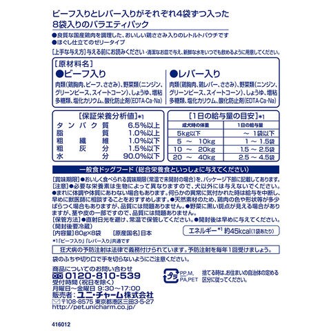 メーカー画像 グラン・デリ 国産鶏ささみパウチほぐし 成犬用 8個パック ビーフ入り&レバー入り 80g 4520699610732 20210916 y21m09 wakaoo ドッグフード 犬 イヌ 犬用 いぬ用 間食 一般食 ユニチャーム unicharm グランデリ 国産 日本産 レトルト パウチ ゼリー ゼリータイプ ほぐし 鶏肉 opa2_choku