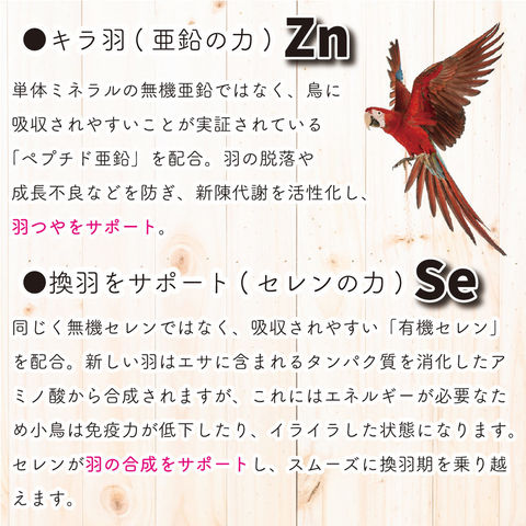 | ご注意 | ※本品は鳥用です。対象以外の動物には与えないでください。 |