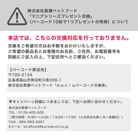| 黒瀬ペットフード プロショップ専用 mania 大型インコ 3L×2袋 | |