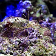 | 飼育のポイント | 一般的なシオマネキと同様に、半分は「陸」、半分は「海水」というマリンテラリウムのような飼育方法が好ましいです。 特に陸地には3cmよりも厚くサンゴ砂などを敷き詰め、海水が淀まないようにエアレーションや小型の水中ポンプを組み込み常に海水が循環するようにしてください。 また、日中は甲羅干しを行えるように20W~50W程度のバスキングライトでホットスポットを設置してあげるとよいです。 オス個体は、同種が接近すると小競り合いをしますので注意が必要です。 |