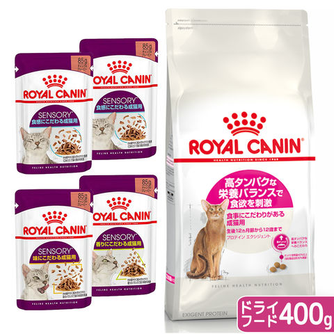 ロイヤルカナン 猫 栄養バランスにこだわる成猫セット ドライ400g ジップ無し+センサリーウェット食べ比べ4袋 関東当日便