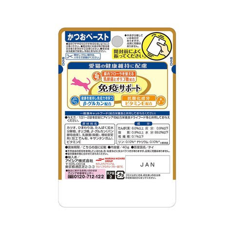 AIXIA 健康缶 介護 水分補給 アイシア 健康缶パウチ 免疫かつお ペースト 40g キャットフード ウェットフード 乳酸菌 EC-12 β-グルカン 猫 ねこ 猫用 ねこ用 ビタミンE オリゴ糖 猫フード 猫用フード melma21jkkmeneki opa2_choku 20220510 y22m05 wakaoo ×2袋 y22m02