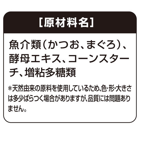 原材料 魚介類(かつお、まぐろ)、酵母エキス、コーンスターチ、増粘多糖類