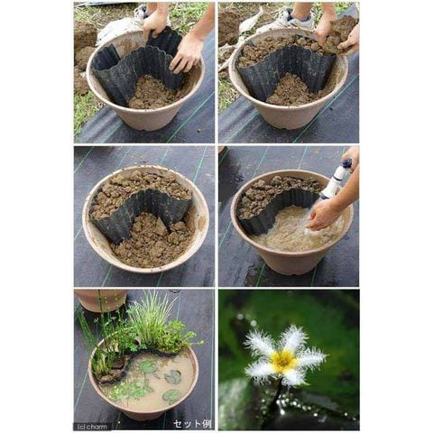 | セット内容 | ・プラスチック製睡蓮鉢(直径約44×高さ約26cm 23L) ・ウォータークローバー ムチカ(1ポット) ・no.48 ビオの土(水草の粘土) 3リットル×2 ・中景草(1種) ・後景草(1種) ・アサザ 夕日(1ポット) ・あぜなみ 高さ25cm×全長180cm ・カルキ抜き・餌サンプル ※お届けする前景、中景、後景草はおまかせとなります。 |