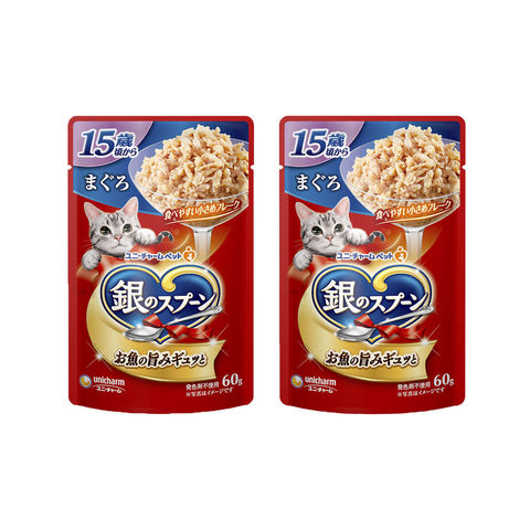 de20_unigpw _neko 4520699607138 銀のスプーンパウチ 15歳頃から まぐろ 60g キャットフード 猫フード ウエットフード ウェットフード ユニチャーム ユニ・チャーム KK 高齢猫 シニア 老猫 uni2006point unic2008point 2袋入り 20220617 y22m06 ytks ×2袋 ginsp_tan0201