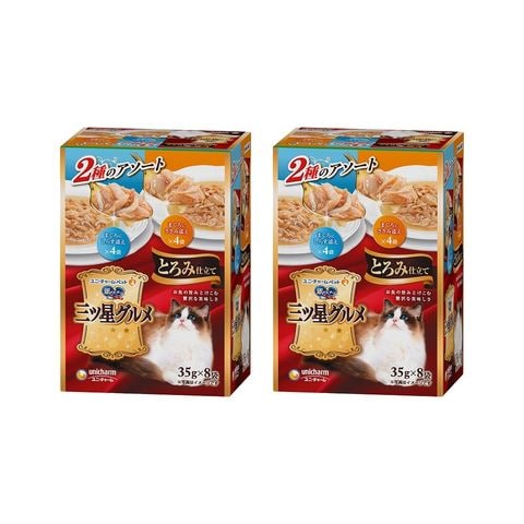 メーカー画像 銀のスプーン 三ツ星グルメパウチ とろみ仕立て まぐろにしらす添え&まぐろにささみ添え 35g×8袋 4520699680889 三ツ星グルメ パウチ ユニチャーム 猫 ねこ 猫用フード 猫フード フード ウエットフード ウェット ウエット 一般食 レトルト 三ッ星グルメ 鮪 マグロ ササミ とりささみ 鶏ササミ シラス とろみ 2箱 ginsp_tan0201