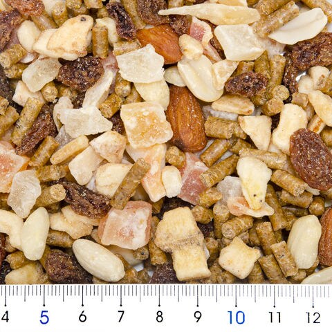 | 原材料 | ポーポー、パイナップル、マンゴー、アプリコット、バナナ、サルタナ、ピーナッツ、アーモンドなど(季節毎、厳選されたドライフルーツとナッツ)、【パスウェル パレットペレット】:小麦、大麦、オーツ麦、エンドウ豆、ルパン豆、分離大豆タンパク質、分離ホエイタンパク質、アミノ酸(リジン、メチオニン)、植物油、オメガ3脂肪酸、オメガ6脂肪酸、カロテノイド、ビタミン(A、B1、B2、B3、B5、B6、B9、B12、C、D3、K)、ビオチン、コリン、ミネラル類(カルシウム、リン、カリウム、ナトリウム、マグネシウム、亜鉛、鉄、マンガン、銅、ヨウ素、セレン)、乾燥酵母プレバイオティクス乾燥酵母 |