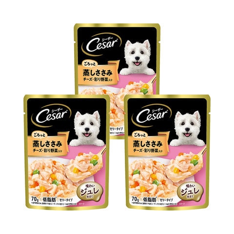 シーザー ごろっと蒸しささみ チーズ・彩り野菜入り 70g×3袋 パウチ ドッグフード 関東当日便