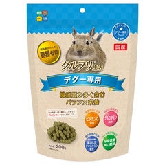 | 特長 | ●獣医師と共同開発した、デグー専用のフードです。 ●草食性のデグーの食性に合わせ、チモシー・アルファルファを主原料に栄養価の高い大豆類、機能性成分を配合しました。 ●L-カルニチン、コエンザイムQ10、難消化性デキストリン配合で健康維持をサポートします。 ●ユッカ抽出物配合で尿臭を吸着し臭いを軽減します。 ●美味しくてヘルシー!手に持って食べやすいX型に仕上げました。 |