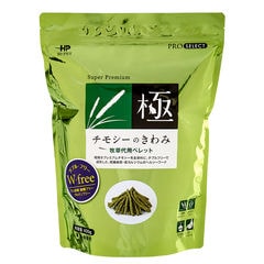 | 原材料 | 牧草(アルファルファ、チモシー)、大豆類(脱脂大豆、きな粉、おから)、コーンミール、ふすま等糟糠類、大豆プロテイン、炭酸カルシウム、にんじんエキス、食塩、難消化性デキストリン、ビタミンミックス、ミネラルミックス、ビタミンC、ユッカ抽出物、L-カルニチン酒石酸塩、コエンザイムQ10、乳酸菌EC-12(殺菌処理) |