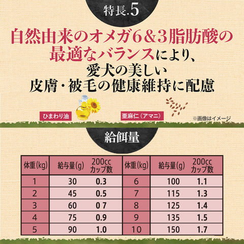 | ご注意 | ※本品は成犬用です。対象年齢以外の犬には与えないでください。 ※本品は、ペットフード公正取引協議会の定める分析試験により、愛犬に適したバランスの良い総合栄養食の基準を満たすことが証明されています。 ※本品は、AAFCO(欧米飼料検査官協会)規定の分析試験により、愛犬の健康維持に適したバランスの良い総合栄養食であることが証明されています。 |