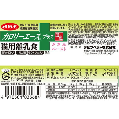 メーカー画像 デビフ カロリーエースプラス 猫用離乳食 ささみペースト 85g ×24缶 4970501033684 20221031 y22m10 Y.K. 猫 ねこ 猫用 ねこ用 キャット cat 猫フード キャットフード ペットフード フード 餌 エサ ごはん こねこ 子ねこ 子猫 仔猫 こねこ用 子ねこ用 子猫用 仔猫用 キトン キトゥン 幼猫 離乳 母猫 授乳 ケース売り
