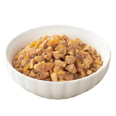 | 特長 | ●お肉ベースの総合栄養食です。 ●お肉のおいしさが詰まった素材をうまみたっぷりのゼリーで包みこみました。 ●ゼリー仕立てのレトルトパウチです。 |