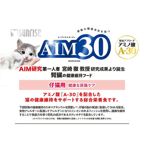メーカー画像 キャットフード サンライズ AIM30 仔猫用 健康な尿路ケア フィッシュ 600g 4973321943416 20221003 y22m10 mikari 猫 ネコ 子ねこ 子猫 仔猫 仔ねこ 餌 エサ ご飯 ごはん 総合栄養食 腎臓 アミノ酸 国産 bnr2210aim30 opa2_choku catday2024sunr melma2409syouryocat