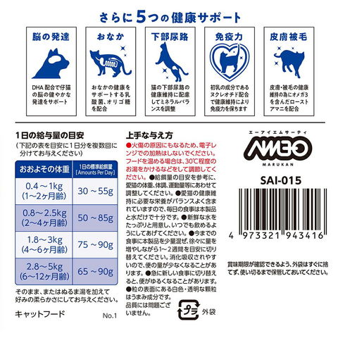 | ご注意 | ※本品は仔猫用です。対象年齢以外の猫には与えないでください。 |