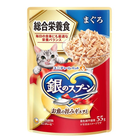 メーカー画像 銀のスプーン パウチ 総合栄養食 まぐろ 55g 4520699686683 20230501 y23m05 Y.K. 猫 ねこ 猫用 ねこ用 キャット cat 猫フード キャットフード ペットフード フード 餌 エサ ごはん ウェット ウェットフード 成猫 成猫用 フレーク 鮪 まぐろ節 ツナ 魚 さかな フィッシュ ユニチャーム ユニ チャーム opa2_choku melma2409syouryocat