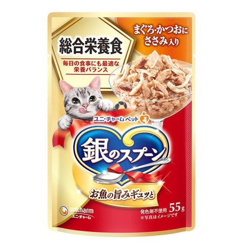 メーカー画像 銀のスプーン パウチ 総合栄養食 まぐろ かつおにささみ入り 55g 4520699687611 20230501 y23m05 Y.K. 猫 ねこ 猫用 ねこ用 キャット cat 猫フード キャットフード ペットフード フード 餌 エサ ごはん ウェット ウェットフード 成猫 成猫用 フレーク 魚 フィッシュ ユニチャーム ユニ チャーム 鮪 かつお 鰹 ささみ とりささみ 鶏ささみ とり肉 鶏肉 チキン opa2_choku melma2409syouryocat