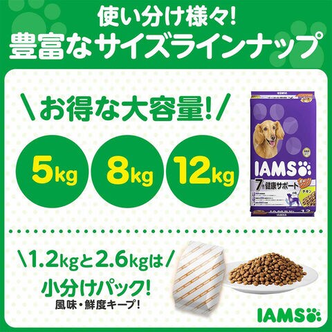 ドックフード ペットフード カリカリ 犬 いぬ 犬フード 犬用ドライフード 犬の餌 犬のエサ 餌 えさ シニア犬 老犬 高齢犬 プレミアムフード 鳥肉 肉 小分け Iams アイアムス アイムス 7歳以上用 健康サポート チキン 小粒 2.6kg ドッグフード 正規品 4902397842200 ×4袋 ドライ フード