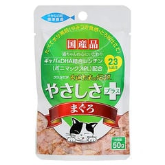 | 特長 | ●大人気「やさしさプラス」のパウチ版、やみつき食感・とろ旨立ての愛猫用ウェットフードです。 ●水分補給にも最適です。 ●ギャバとかつおやまぐろの卵油に含まれるDHA結合レシチンを配合しました。 |