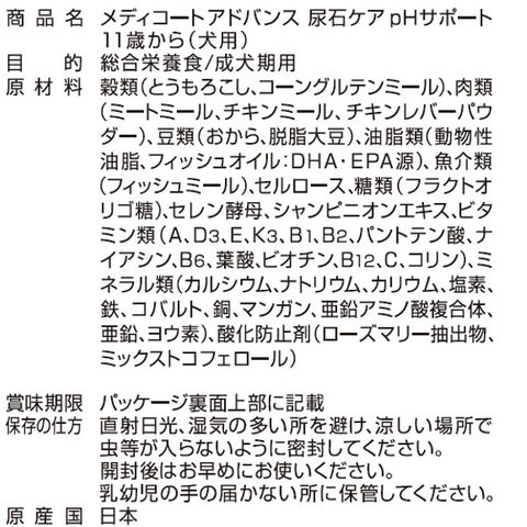 | メディコートアドバンス 尿石ケア pHサポート 11歳から 6kg(500g×12袋) | |