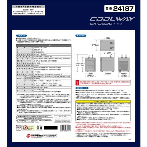 ご注意 ※本品はアクアリウム用のクーラーセットです。目的以外の用途では使用しないでください。