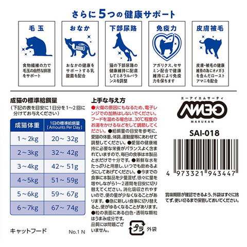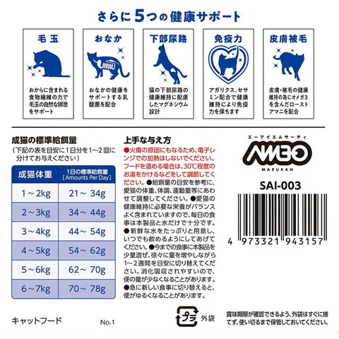 | ご注意 | ※本品は成猫用です。対象年齢以外の猫には与えないでください。 |