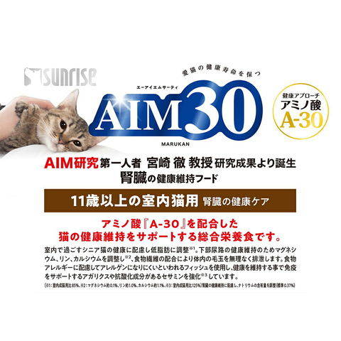 aimsnackasort メーカー画像 サンライズ AIM30 11歳以上の室内猫用 腎臓の健康ケア 600g 猫用 ねこ用 キャットフード 猫フード cat 腎臓 アミノ酸 総合栄養食 ごはん ご飯 えさ 餌 ドライフード カリカリ MARUKAN マルカン SUNRISE チキン フィッシュ 国産 日本産 低脂肪 SAI-002 エイム30 y23m7 ngwordCHK_OK catday20aaaaaa ドライ フード