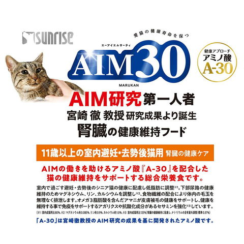 aimsnackasort メーカー画像 サンライズ AIM30 11歳以上の室内避妊・去勢後猫用 腎臓の健康ケア 600g 猫用 ねこ用 キャットフード 猫フード cat 腎臓 アミノ酸 総合栄養食 ごはん ご飯 えさ 餌 ドライフード カリカリ MARUKAN マルカン SUNRISE チキン フィッシュ 国産 日本産 低脂肪 SAI-002 エイム30 y23m7 ngwordCHK_OK catday20aaaaaa ドライ フード
