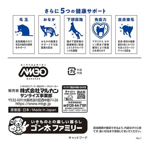 | ご注意 | ※本品は11歳以上のシニア猫用です。対象年齢以外の猫には与えないでください。 |