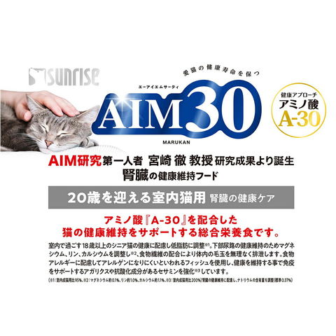 aimsnackasort メーカー画像 サンライズ AIM30 20歳を迎える室内猫用 腎臓の健康ケア 600g 猫用 ねこ用 キャットフード 猫フード cat 腎臓 アミノ酸 総合栄養食 ごはん ご飯 えさ 餌 ドライフード カリカリ MARUKAN マルカン SUNRISE チキン フィッシュ 国産 日本産 低脂肪 SAI-002 エイム30 y23m7 ngwordCHK_OK catday20aaaaaa ドライ フード