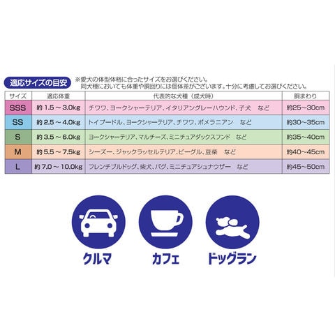 | サイズ(約) | 胴まわり:35~40cm 適応体重:3.5~6.0kg |