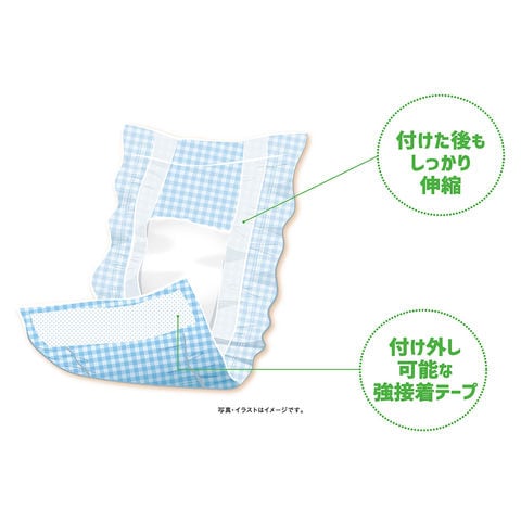 | 特長 | ●介護用、お出かけ用、生理用、おもらし対策にも使えるオムツです。 ●動いても収縮性ギャザーでしっかりフィットします。 ●何度も付け直しができる装着テープを採用しています。 ●しっかりした厚手の吸収体で、たっぷり吸収するので長時間安心です。 |