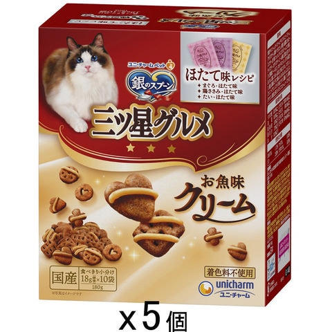 メーカー画像 銀のスプーン 三ツ星グルメ お魚味クリーム ほたて味レシピ 3種のアソート 180g 4520699683545 猫フード キャットフード ネコ 猫 総合栄養食 シーフード ユニチャームペット ユニチャーム・ペット ユニチャーム アソート さかな 魚 ホタテ 帆立 貝 着色料不使用 無着色 国産 小分け 食べきり 三ツ星 クリーム ×5個 2250002959129 20230913 y23m09 mikari catday2024uni3