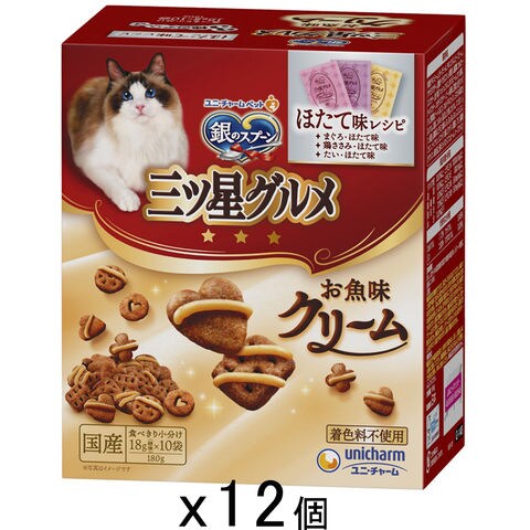 メーカー画像 銀のスプーン 三ツ星グルメ お魚味クリーム ほたて味レシピ 3種のアソート 180g 4520699683545 猫フード キャットフード ネコ 猫 総合栄養食 シーフード ユニチャームペット ユニチャーム・ペット ユニチャーム アソート さかな 魚 ホタテ 帆立 貝 着色料不使用 無着色 国産 小分け 食べきり 三ツ星 クリーム ×12個 2250002959136 20230913 y23m09 mikari