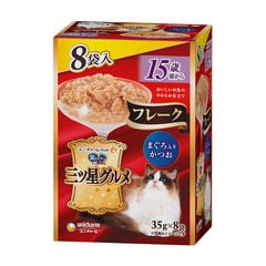 | セット内容 | ●三ツ星グルメパウチ フレーク まぐろ入りかつお&まぐろしらす入りかつお(35g×8袋)×1袋 ●三ツ星グルメパウチフレーク ささみまぐろ入りかつお(35g×8袋)×1袋 ●三ツ星グルメパウチフレーク まぐろ入りかつお(35g×8袋)×1袋 |