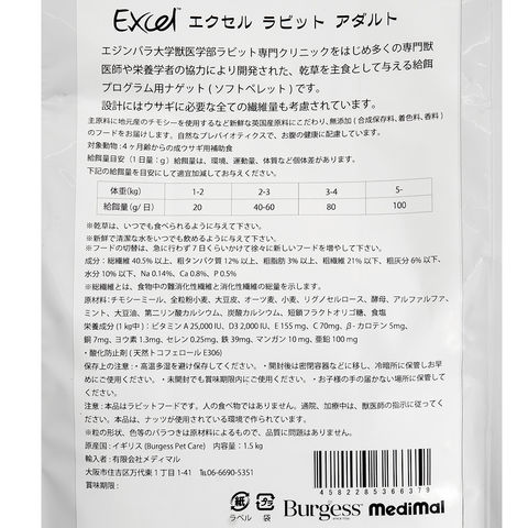 エクセル ラビット アダルト 1.5kg うさぎ フード 4582285366379 小動物・鳥 ペット用 小動物用 小動物 フード えさ エサ 餌 ごはん メディマル ウサギ 兎 ペットフード ペレット 成体 大人 食物繊維 無添加 合成保存料不使用 着色料不使用 香料不使用 チモシー ソフトペレット ソフトタイプ 乾草 補助食 補助飼料 繊維 20231214 mura