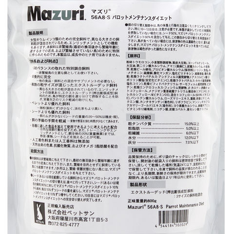 | Mazuri パロットメンテナンス ダイエット 800g | |