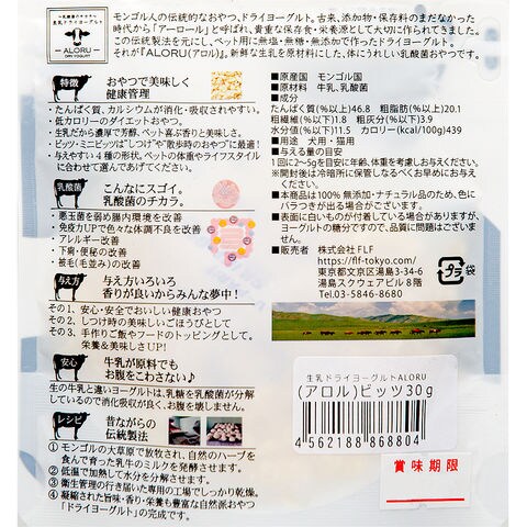 frditem_hidden _dog 生乳ドライヨーグルト アロル ビッツ 30g 4562188868804 20170706 YMYM 牛乳 乳酸菌 生乳 ドライヨーグルト 猫フード 犬フード 猫おやつ 犬おやつ 猫乳酸菌 犬乳酸菌 無塩 無糖 無添加 お腹にやさしい 低カロリー アレルギー改善 自然派おやつ 健康管理 かため sns_1905_yogurt bnr2003petSupple dryyoghourt bnr2201dogfod おなか